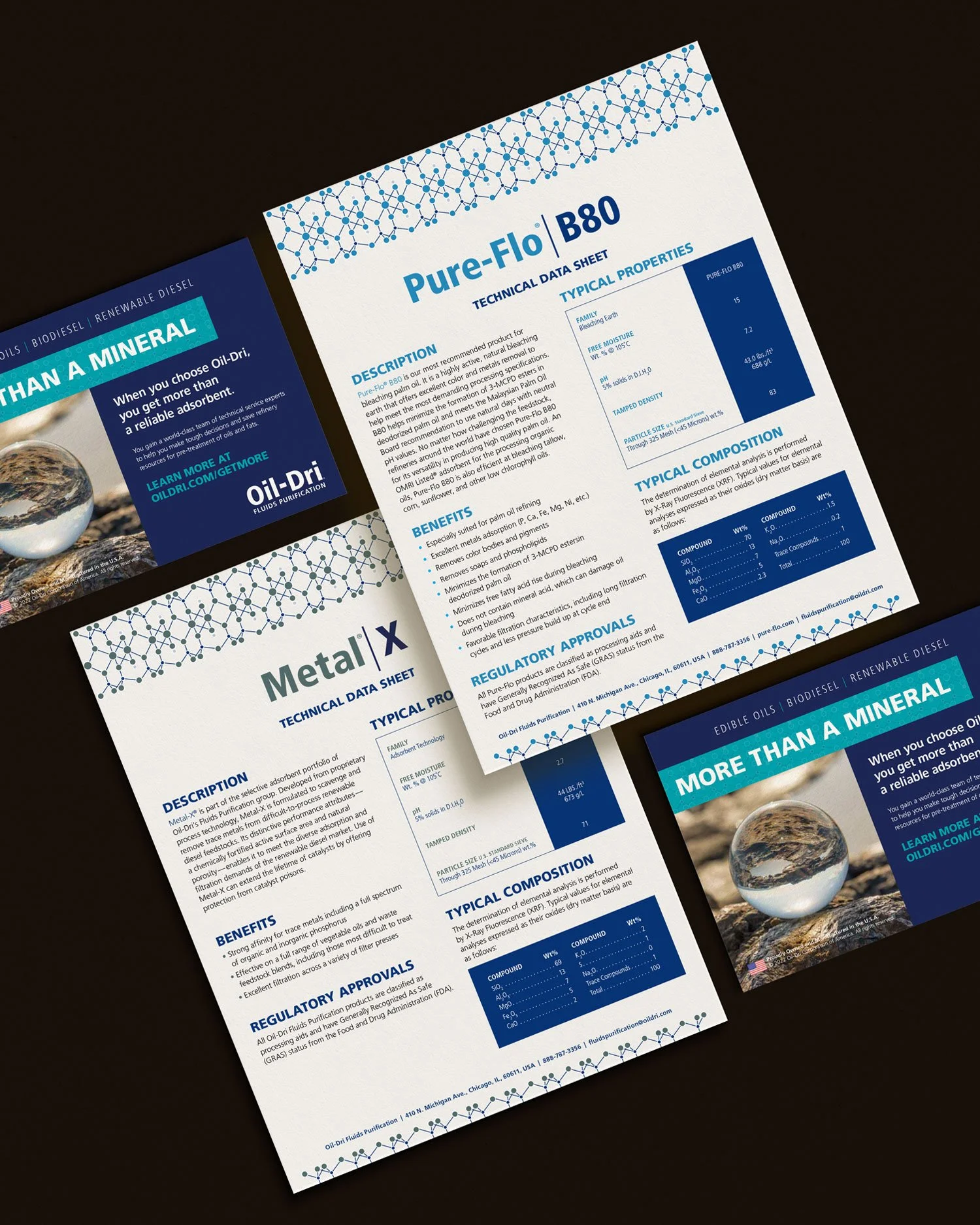 Oil-Dri Corporation, a U.S. leading producer of specialty sorbent products, engaged Clarke Creative to revamp its advertising campaign and various brand materials for their fluids purification division (a key segment of Oil-Dri). With rising competition in the edible oils sector, Oil-Dri aimed to highlight their unique selling points and promote their complete product range. In addition, they sought to boost brand visibility and sales in the burgeoning renewable diesel market for their new and innovative Metal-X and Metal-Z products.